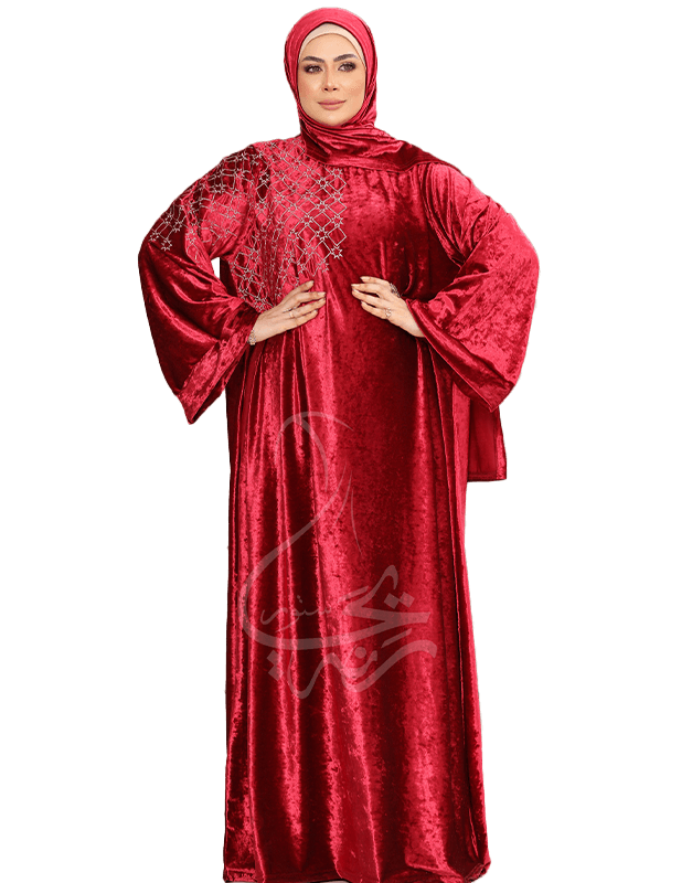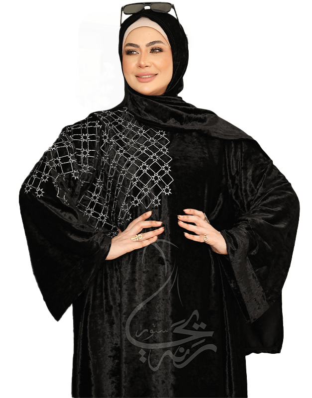 إسدال قطيفة فاخر بتصميم واسع ومطرز على الأكمام، يجمع بين الراحة والفخامة. يتميز بحزام داخلي لشد الخصر وطرحة متصلة لتنسيق مثالي دون مجهود. مناسب لجميع المقاسات حتى 120 كيلو، ليمنحك إطلالة أنيقة وجذابة للمناسبات والخروجات الراقية.